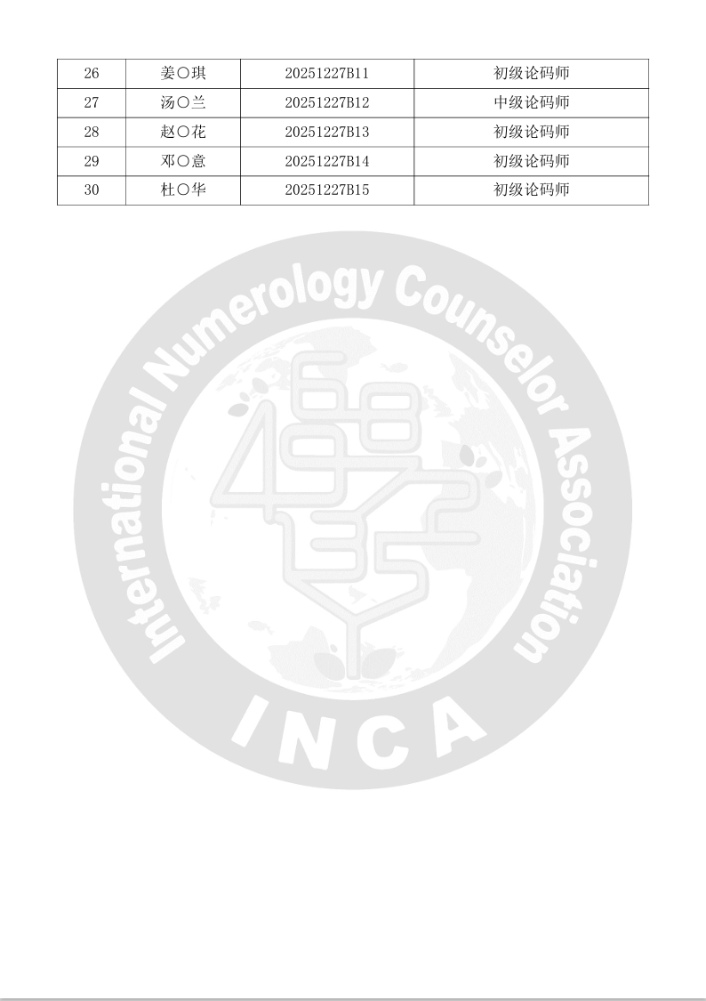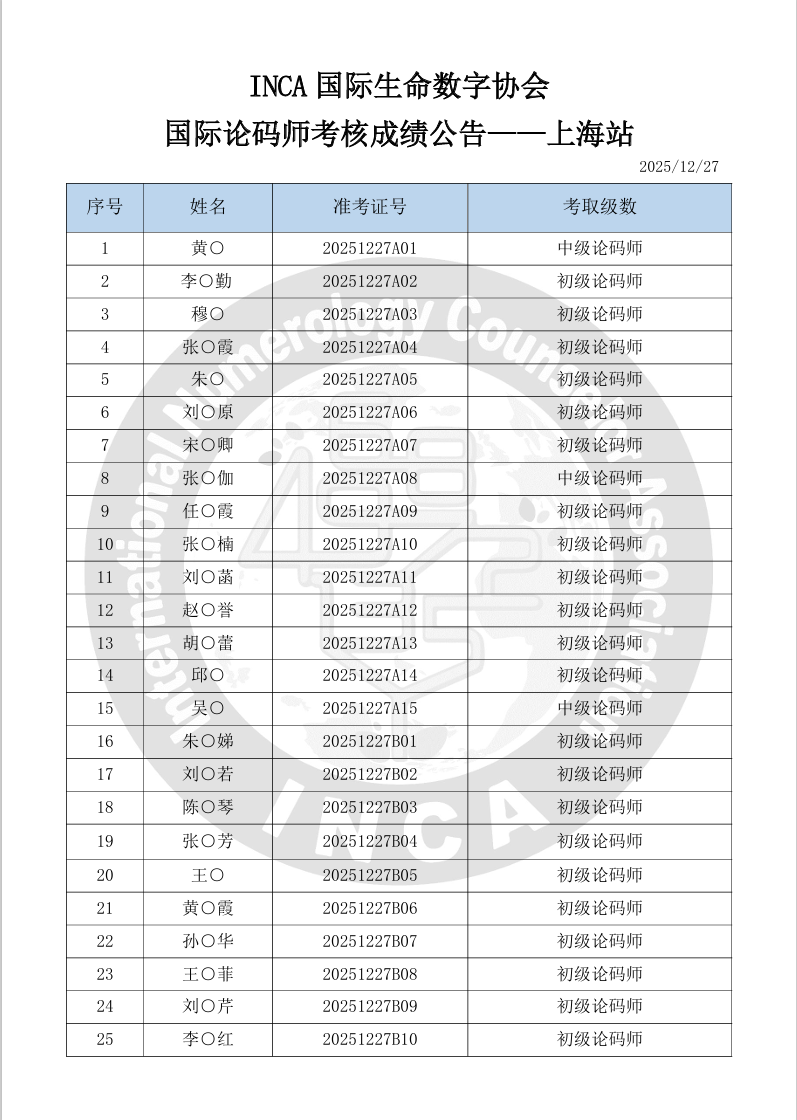 最新消息 |INCA國際論碼師考核成績公告-上海站(2025/12/27)